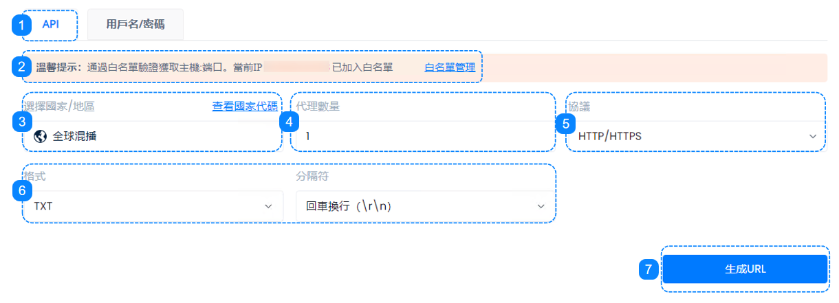 接下來,我們將通過詳細的屏幕截圖和清晰的說明,分別向您展示 API ( IP 白名單) 和用戶名/密碼的代理配置方法。