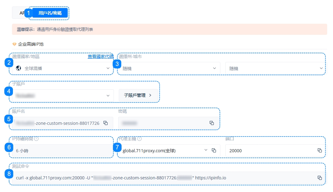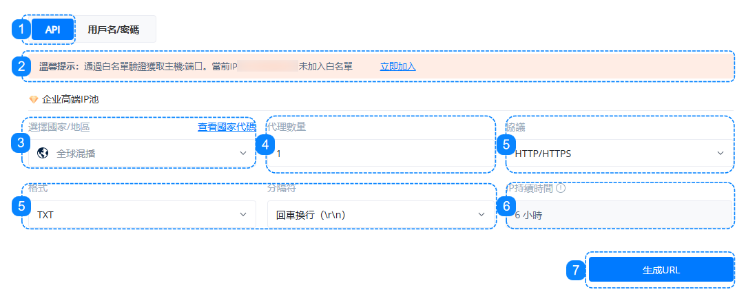 接下來,我們將通過詳細的屏幕截圖和清晰的說明,分別向您展示 API ( IP 白名單) 和用戶名/密碼的代理配置方法。