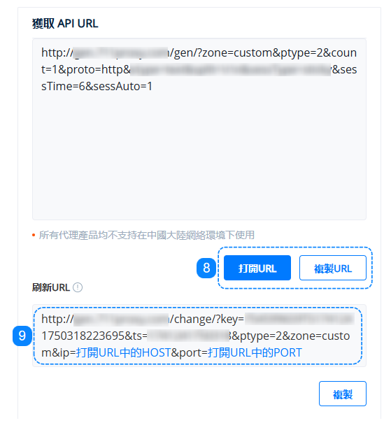 8. 生成URL 後,你可以選擇複製 URL 或者打開 URL,打開鏈接就可以看到生成的代理列表。您可以在 API URL 頁面上了解更多信息。