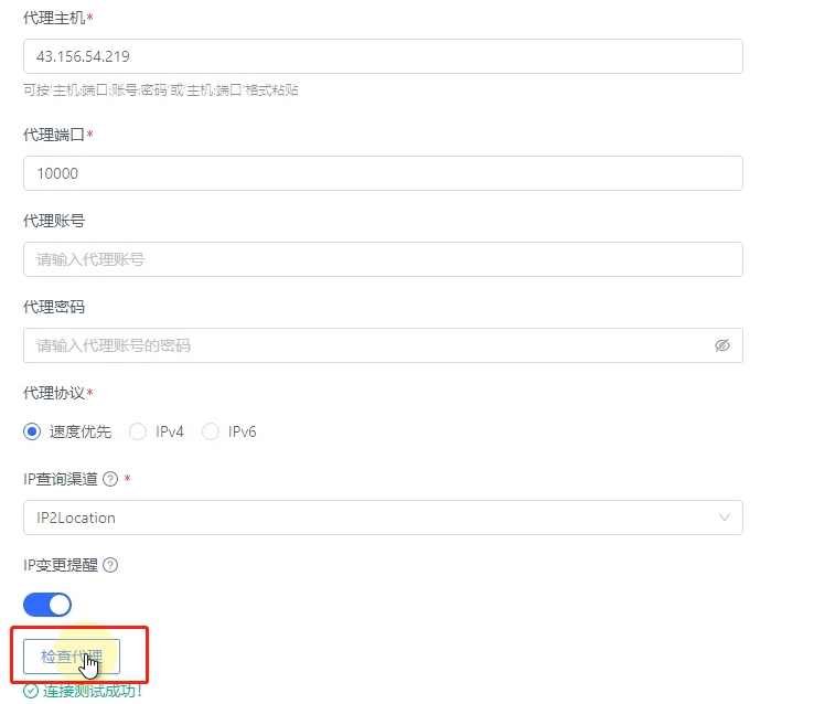 3. 最後點擊檢查代理,檢測成功後,點擊完成就可以開始使用