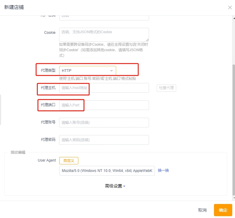 3.選擇您要使用的【代理類型】,以API提取為例,填入 “代理主機” 和 “代理端口”,如果使用的是賬密認證則還需要填寫 “代理帳號” 和 “代理密碼”,然後點擊【檢查代理】,顯示連線測試成功即可點選【確定】。
