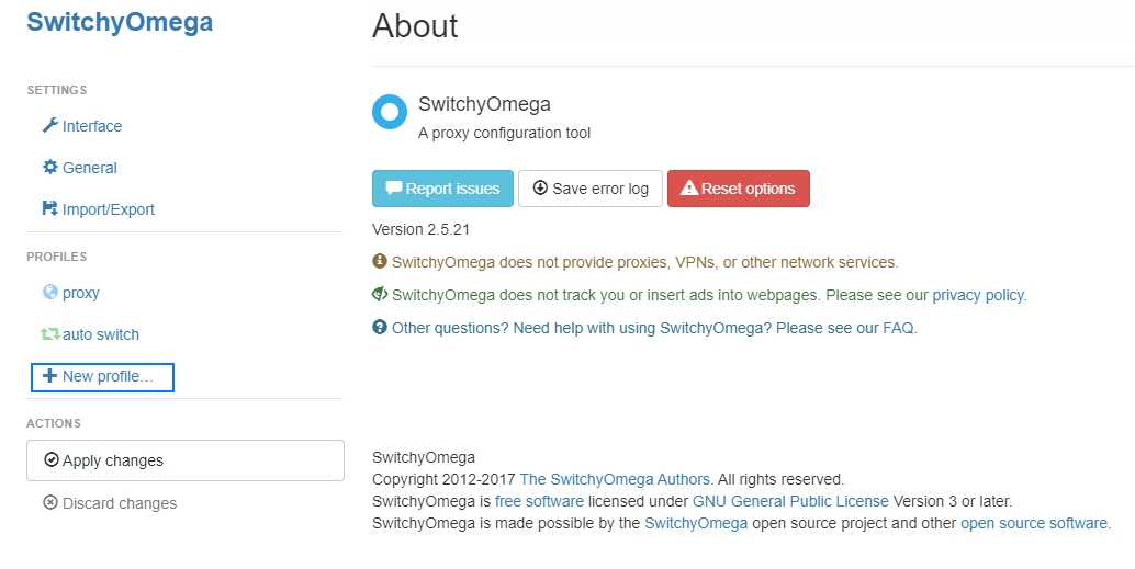 1. 通過瀏覽器擴展,打開SwitchyOmega的選項。