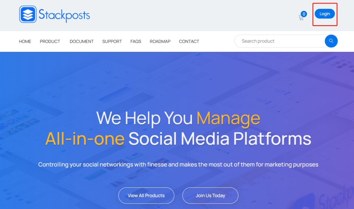 1. 打開Stackposts主頁並單擊登錄按鈕。輸入用戶名密碼並進入儀表板