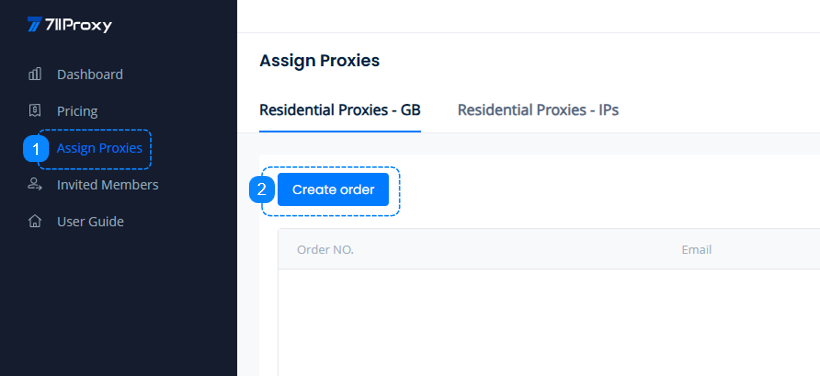 1. If you're using it for yourself, simply click ① Assign Proxies → ② Create Order, then select your own email in the pop-up window and complete the allocation.