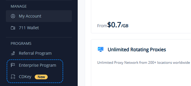 711Proxy's Enterprise Plan is designed for customers who need to purchase residential proxies in large volumes. Compared to standard residential proxy packages, the enterprise-level plan offers more competitive discounts and greater flexibility in allocation and management.