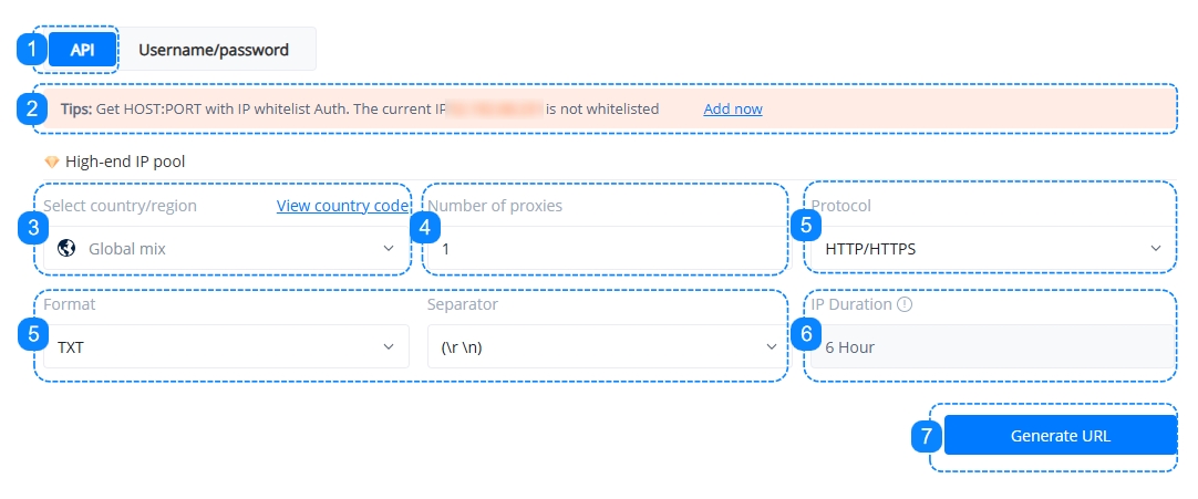 Next, we will walk you through the proxy configuration methods for both API (IP Whitelist) and Username/Password, with detailed screenshots and clear instructions.