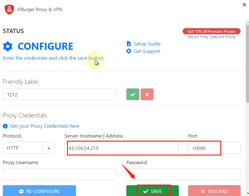 Before integrating a proxy into IPBurger Proxy & VPN , make sure you have set up the proxy correctly to guarantee that the proxy service will work properly. Click here to see how to set up the proxy.