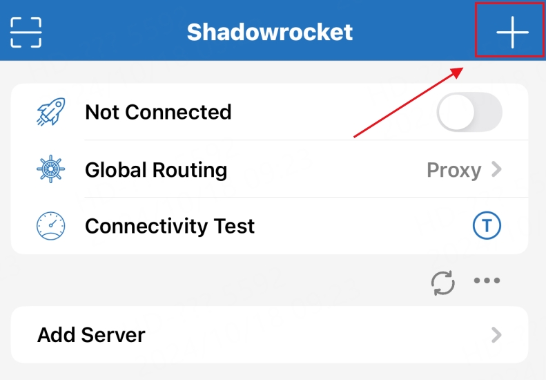 1. Open Shadowrocket, then tap the "+" icon in the upper right corner to add a configuration